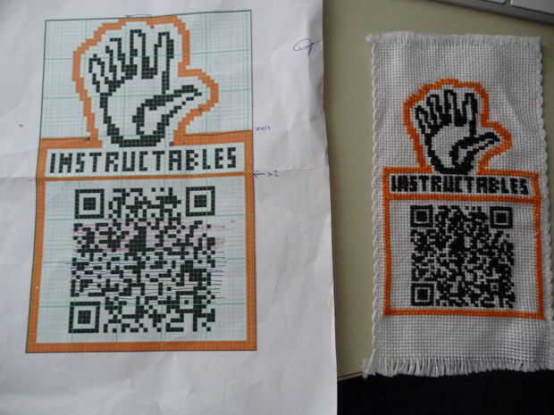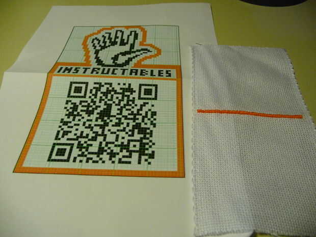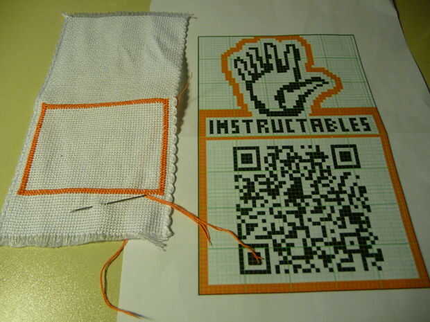 -empezar a copiar el diseño a la tela cortar la naranja y el negro del hilado (ver primera imagen). Para cada píxel del diseño de hacer un punto de Cruz (por esta razón debe mantener el diseño simple y pequeño)