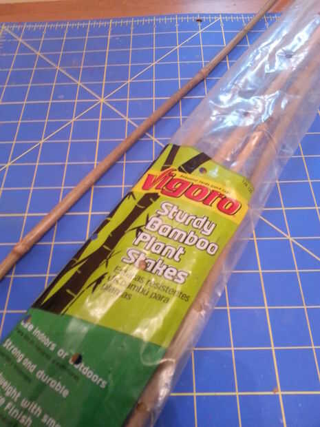 1. Estaca del jardín bambú - Home Depot tiene algunos. Búsqueda para "estaca de bambú". ~ $1,89 (6pcs)