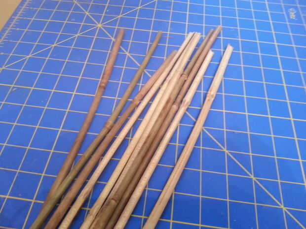 - Algunas cañas de bambú no son bastante rectas y cuando se dividió en dos, cada lado puede no ser incluso. No se preocupe! Tiene estacas de bambú extra para trabajar con tan sólo medida, corte y la fractura otra vez hasta llegar a tamaños incluso de palillos de bambú. Necesita un total de 10 piezas de 20" split palos de bambú.