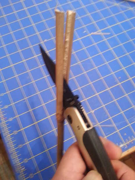 (!) Tenga cuidado de no cortar a su auto al manejar el cuchillo a través de la varilla de bambú. También, tenga cuidado al correr sus dedos a través de bambú puesto que puede provocar una astilla.