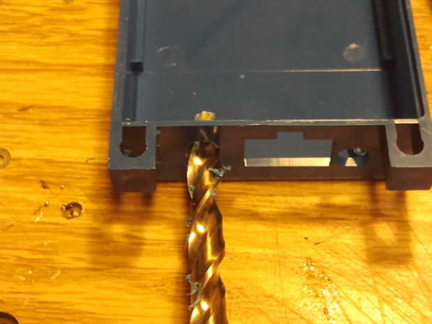 c. l ' taladro 1/4" o 6mm más en la parte inferior de la caja junto al Monitor Jack deje suficiente espacio para permitir la caja máxima que deslizan a Asamblea.