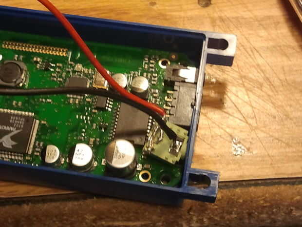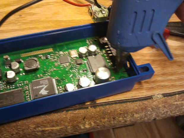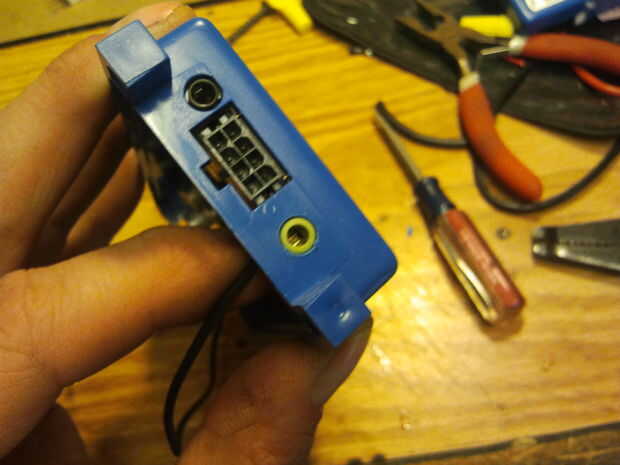 d. use un poco de pegamento caliente en tablero de PC para ayudar a mantener la salida de auriculares en su lugar, después de enfríe uso un poco más para asegurarse de que no mueva cuando se coloca el tapón.