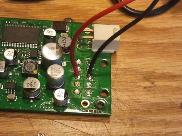 b. soldadura negativo del altavoz - cable al tablero de PC
