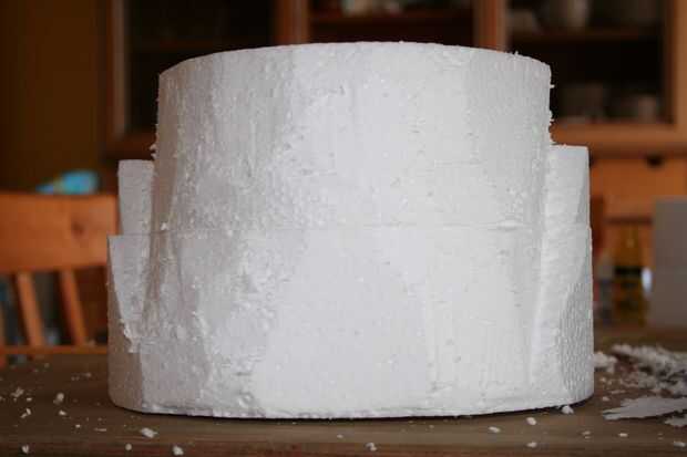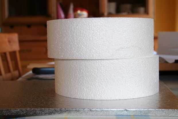 Lógica dictaría normalmente utilizar sus materiales más ligeros hacia arriba, especialmente al hacer un pastel como este donde el ángulo del cuerpo y la altura fueron instrumentales para mi diseño. Prefiero tener como mucho de mis pasteles que tan comestible como sea posible pero porque estaba determinado a tener cierta altura para este pastel, decidí usar algunas tartas dummy así que había menos posibilidades de allí siendo pastel sobrante que terminaría consiguiendo perdido. También decidí sería mejores en la parte inferior pero no hay razón que no podía hacer toda la torta.