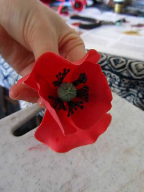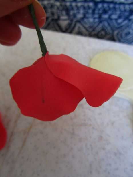 Tome su amapola parcialmente terminada y garantizar un gran pétalo exterior a cada lado, rellenar lo huecos entre cada uno de los pétalos interiores. Los pétalos exteriores se unirá a la base de los pétalos interiores y un poco de alambre por el pegamento, completando la estructura de la amapola.