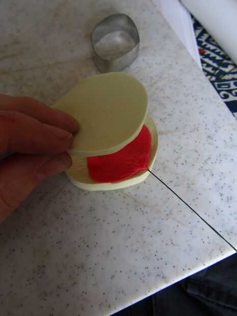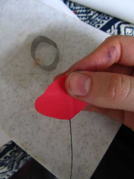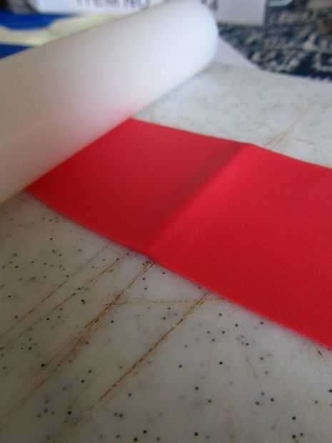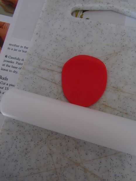 Para hacer los pétalos tomar alguna flor roja pasta. Estirar bastante delgada, pero deja un canto levantado por la mitad. Corta un pétalo interior.