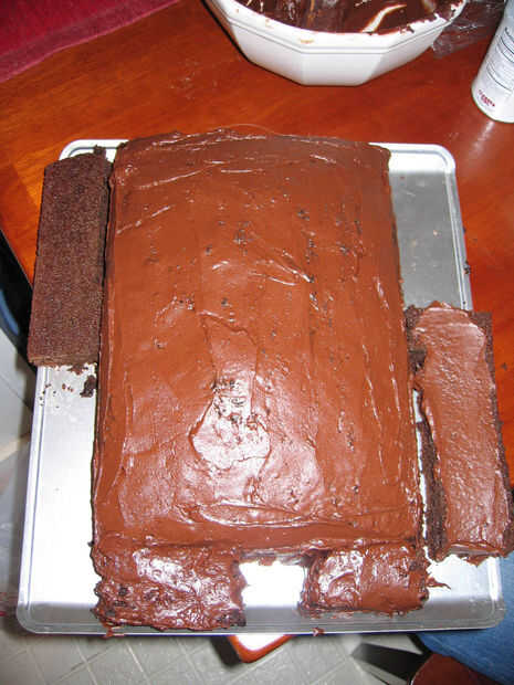Cortar brazos y piernas fuera de la torta de tercera. Transferir al cuerpo y colocarlos en el lugar correcto. Lo que de forma definitiva con un cuchillo. Yo debo haber hecho un mejor trabajo con sus piernas y sus brazos. El cuadro de referencia muestra los brazos y las piernas están ligeramente redondeadas. También tiene una poco entrepierna que a ambos lados de sus piernas. Yo no mire mi foto de referencia en este punto y no capturar todo perfectamente. Domokun también tiene poco de las manos y la parte superior de su cabeza es ligeramente redondeada. Usted puede conseguir tan precisa como desee. Tómese su tiempo cortar las piezas.