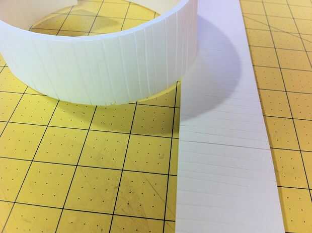 Cortar dos tiras de 2 pulgadas de espuma (variar el ancho de diversos efectos). Cortan líneas aproximadamente 1/4 de pulgada hacia abajo las tiras de la Junta de proyecto. No corte a través de todo el camino, sólo cortar la capa superior y la espuma. Esto hace las tiras flexibles y capaces de hacer los lados de la torta.
