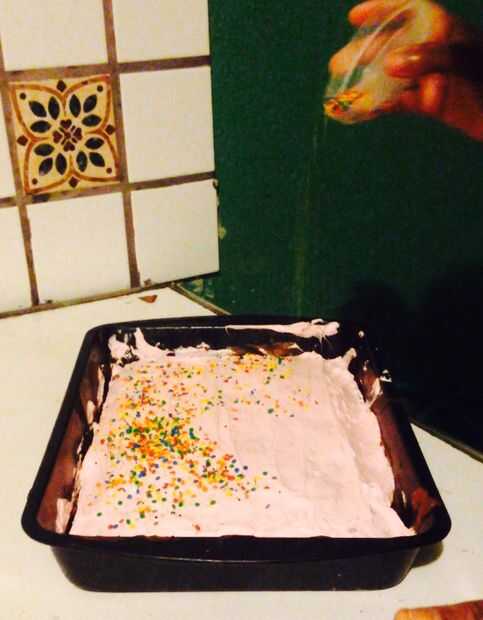 Una vez que la torta es la torta de hielo y decorar