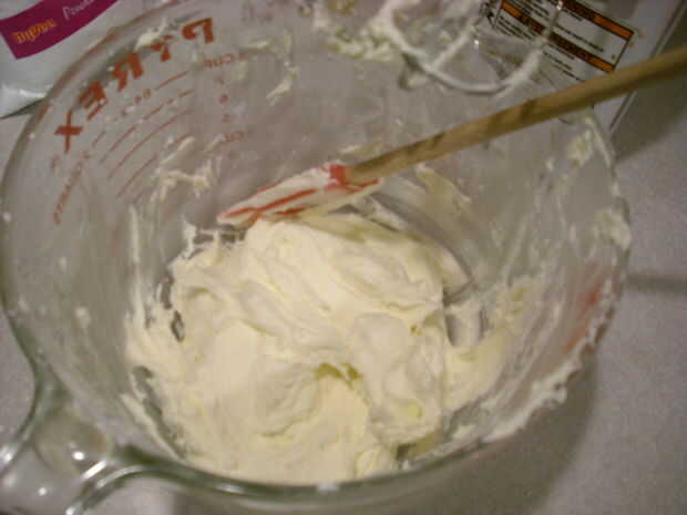 Nota: Usé una batidora de mano mezclar el glaseado porque el bol de la mezcladora vertical es bastante grande por la cantidad de frosting realizados.