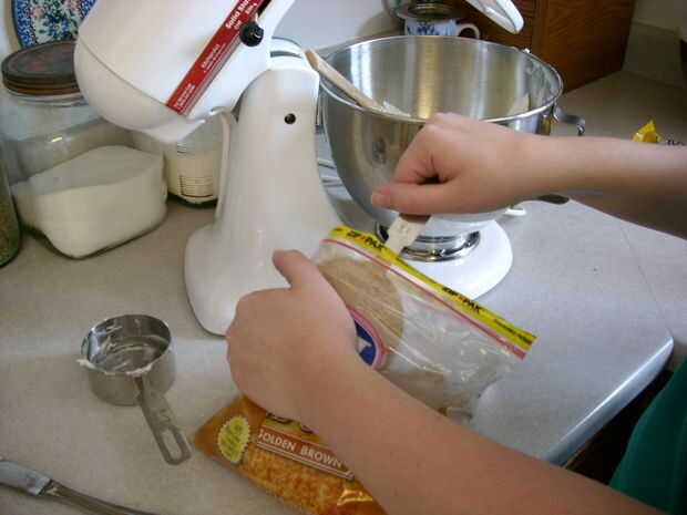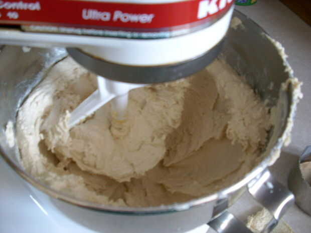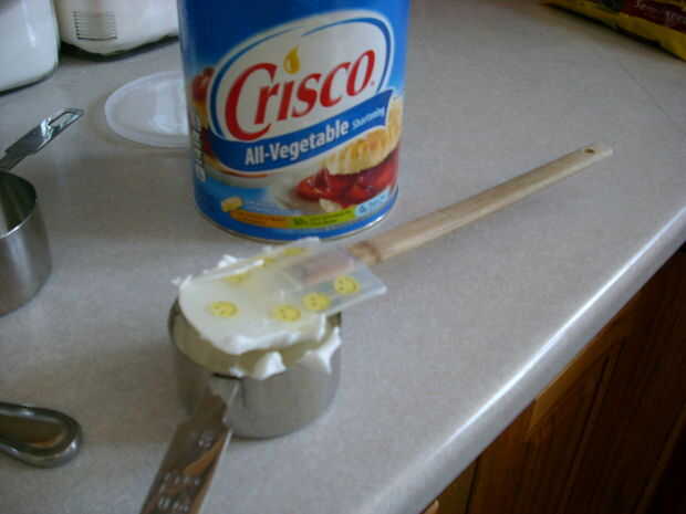 Nota 2: Asegúrese de detener la batidora cada 30 segundos a 1 minuto para limpiar la masa de los lados y en el centro del tazón con una espátula; puede utilizar la misma espátula que utiliza para medir el Crisco en el resto de la receta de galletas. Esto también le permite comprobar la consistencia de la masa.