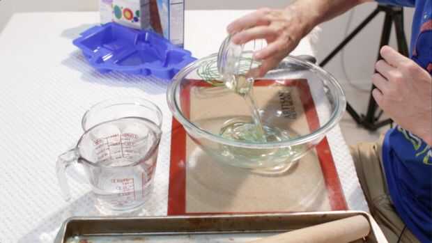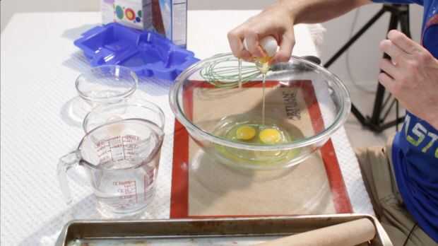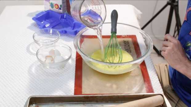 ¡ Primero precalentar nuestro horno a la temperatura en su receta de mezcla de pastel. En mi caso es 350 ° F. Luego vamos a agregar los ingredientes húmedos. (Aceite, huevos, agua) Yo mezcle los muy bien con mi bata. Si usted está usando una mano o batidora ir adelante y sólo añadir todos los ingredientes juntos.