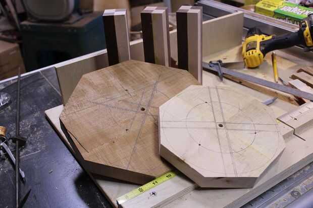Ahora haga lo mismo con el plato inferior y al mismo tiempo hacer un círculo de diámetro más pequeño cerca de 1.5" menos que el radio del círculo grande en el plato más pequeño.