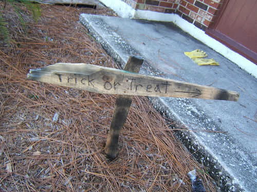 Para tratar de aclarar todo el asunto un poco también hicieron una cruz pequeña y escribí "Trick or Treat" en él y había publicado por la puerta de entrada.
