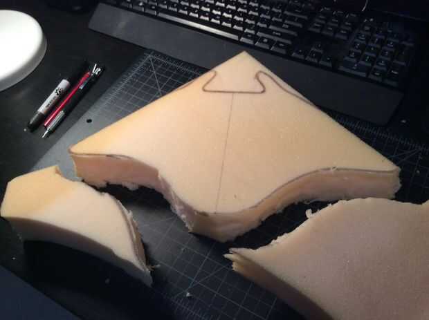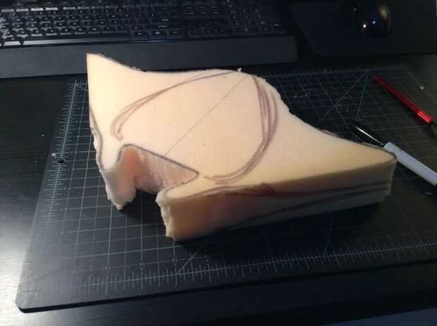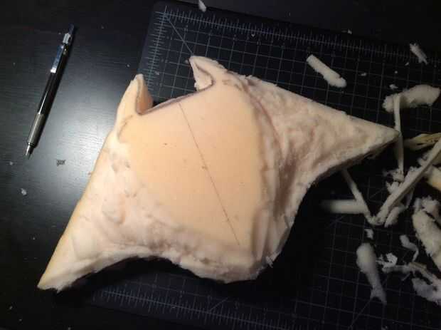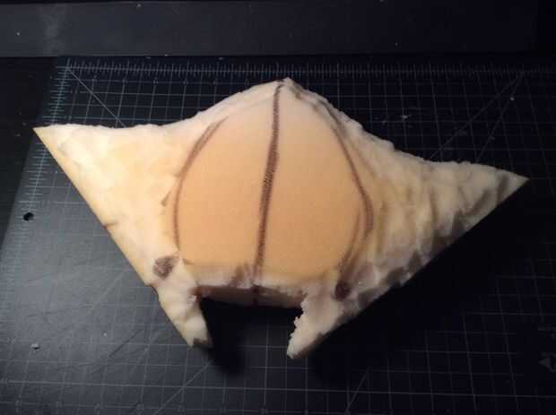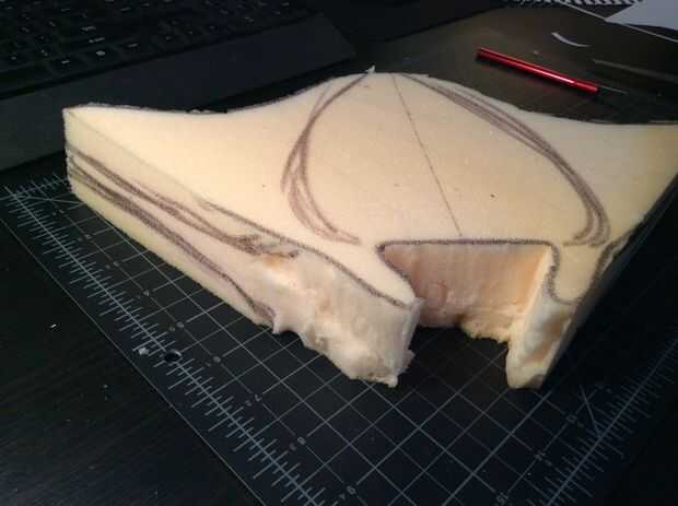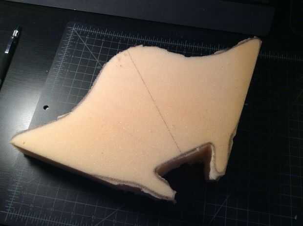 Para este paso recomiendo usar un cuchillo eléctrico Turquía para los cortes más limpios y más fácil. En el caso que no tenga uno, tijeras te servirá si eres desesperado. Está bien si la superficie es áspera y fea, porque nos va más adelante ser cubriéndolo en tela o desechar la espuma totalmente dependiendo de lo que estás usando el patrón de. Comenzar por eliminar primero las esquinas y los mayores no necesitados piezas de espuma y luego refinar hasta que tenga la forma que quiero. Para este proyecto usé tijeras para cortar una boca para mi manta raya para más tarde puedo ocultar electrónica interior.