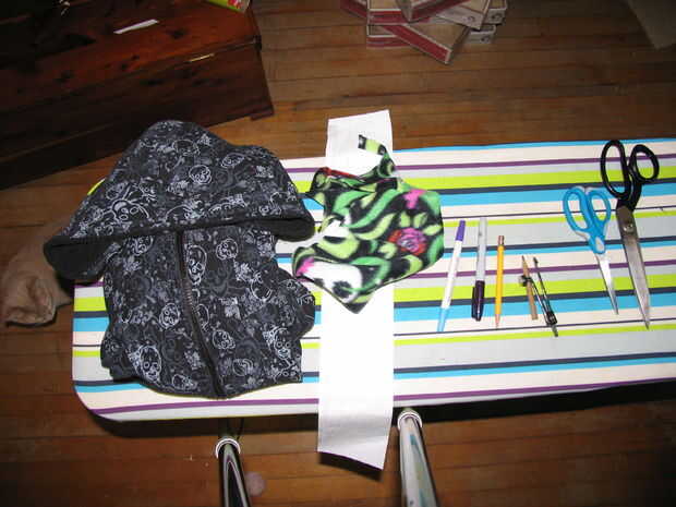 No dejes que el número de pasos te tiran, podrá crear un patrón y coser una prenda de vestir forrado en unos pocos pasos. Recomienda telas: tela de forro polar o sudadera para alcantarillas nuevas, estas son fáciles de manejar y muy perdonar si necesitas ripear una costura. Si eres y cumplida seamster(ess), cualquier cosa que puedas imaginar. Lo que necesitará para este proyecto: 1. tela-estoy usando una vela vieja que fue donada a mí para mi tejido exterior. Si vas a utilizar tejido no elástico, asegúrese de que añadir aproximadamente 1/2" de extra por lo que se respira, además a su margen. r. Si se forro su ropa necesitarás a una tela adicional. Yo soy forro en material de felpa y sudadera de desecho de otros proyectos. 2. cremallera – tengo varios en la mano, compruebe su ropa para ver qué tamaño usted necesita, no debería costarle más de $3-4 sin un cupón para cualquier estándar separa la cremallera. Mía va a ser un 24" Coats & Clark separa cremallera sport. 3. tijeras – usted querrá usar tijeras de tela para esto para obtener cortes bien. Tengo enormes tijeras, pero han encontrado que un nuevo par de tijeras barato $3 de su tienda local será ayudarle a empezar. Sólo asegúrese de no utilizarlos para nada o te mate rápidamente. 4. marcar dispositivo – comenzó con lápiz, pero luego pasó las líneas con rotulador para poder verlos. 5. original ropa – estoy usando mi sudadera favorita ya que me queda bien. 6. medir dispositivo – una cinta funciona bien para medir la prenda, verás usar una plaza más adelante para hacer una pieza larga y una regla de tela especial ($.99 en cualquier tienda de tela) para dobladillar. 7. máquina de coser – es posible coser una prenda con la mano, sólo lleva mucho tiempo. 8. hierro – nuevo puede trabajar sin esto, pero ahorrarás algunos cordura por usarlo. ¿9. compás – recuerde estos de las clases de matemáticas hace mucho tiempo? Yo uso uno para crear mi margen de costura. Super sencillo, sólo tienes que configurar a su margen, arrastre la pieza de metal a lo largo de la línea de costura y voila, margen instantáneo. 10. paciencia: montones y montones, sobre todo si esta es su primera vez haciendo un patrón de una prenda de vestir. 11. seam ripper – para cuando pones una parte al revés y tiene que rehacer (suspiro). 12. potencialmente acceso a lavandería – si usas a tela nueva, necesita lavarlo primero para que no se comprime.