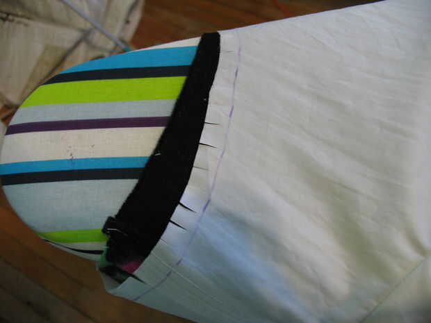 Prender las dos capas juntas. Coincide con su forro y exterior ropa costuras juntos, asegurándose de que todas las costuras en los hombros y línea de lado. Asegúrese de que ambos de estos cierres están abiertos, en ambas telas si no coser queden abiertas antes. Esto disminuirá el grueso de la costura haciendo la prenda más cómoda.