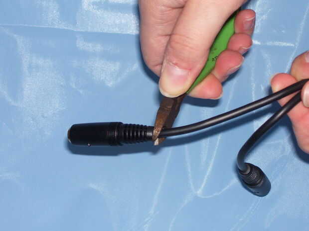 Recuerde, sólo cortar los dos brazos principales del adaptador, dejar intacta la pieza inferior.