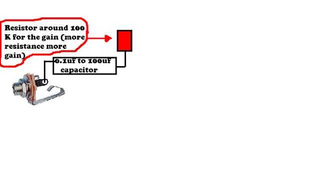 Ahora tome algún cable y conectar el otro polo del condensador a la resistencia de ohmios de resistencia alrededor de 100 k (para la ganancia, cuanto mayor sea la resistencia más ganan menor resistencia menor aumento) conectar como en la imagen siguiente.