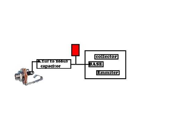 Ahora, tome un cable y conectarlo desde el lado de la 0.1uf a 100uf condensador que engancha la resistencia hasta y conectarlo con el conector de la base del transistor. Como en la foto!