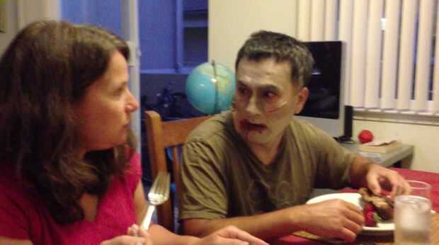 - Cuando todo el mundo llega, son sorprendidos en su aspecto de zombified.
