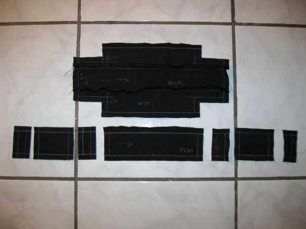 Reunir todos los pedazos del hombro y comenzar a coser en su lugar. Siga el diagrama de colores e imágenes para ayudar a juntarlos todos. Las flechas muestran la zona donde voltear el material de adentro hacia fuera y rellenarlo con el relleno.
