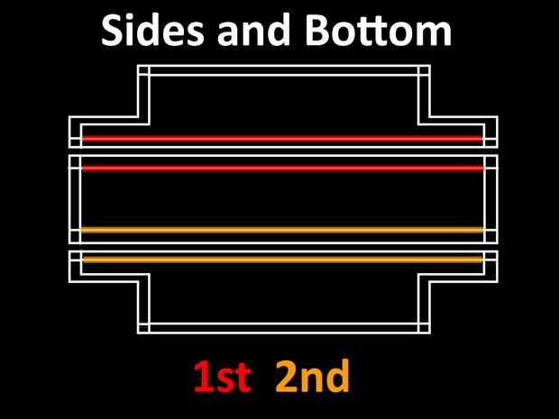 Siga el diagrama de colores y mira las imágenes que le ayudarán a unir todas las piezas. Comenzar con el diagrama "Lados y el fondo" y luego pasar el diagrama de la "sección Top" o viceversa. Una vez que tienes ambas piezas necesita para unirse a los dos juntos.