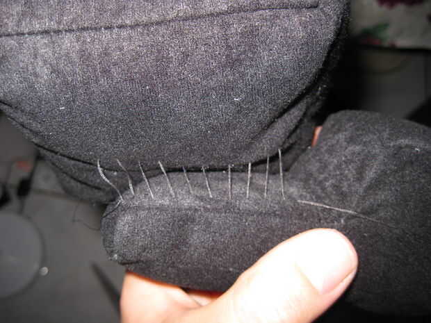 A continuación, el pedazo del hombro alrededor del tirón y ejecutar una puntada de deslizamiento a lo largo de la parte delantera. Después de que termines con eso, coser la parte interna de la cabeza sobre el hombro. Gran trabajo, ahora se llega a coser la cabeza de otros Sub. YEAHHHH!