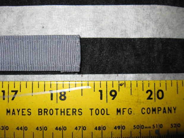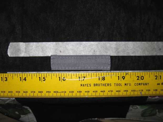Alineación de los ojos en la cabeza principal es ligeramente diferente de las cabezas de los Sub pero sigue siendo una prueba bastante simple. Como han hecho con la línea de la cinta de abajo, coloque su regla en la línea superior con él centrado. Midiendo desde el borde exterior de la tela, medida interior 3/4", haciendo una marca en los lados derecho e izquierdo. Como se puede ver en las fotos tengo mi regla centrada entre 10" 1/16" y 15" 15/16" con mis marcas de alineación en 10" 13/16"y 15" 3/16".