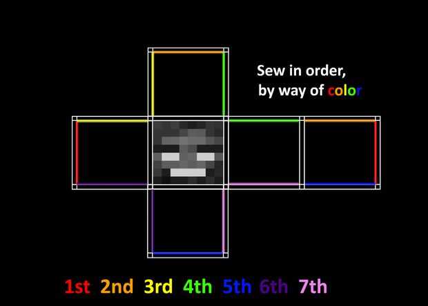 Seguir el diagrama de colores e imágenes para ayudarle a cerrar y coser la cabeza completamente cerrada.
