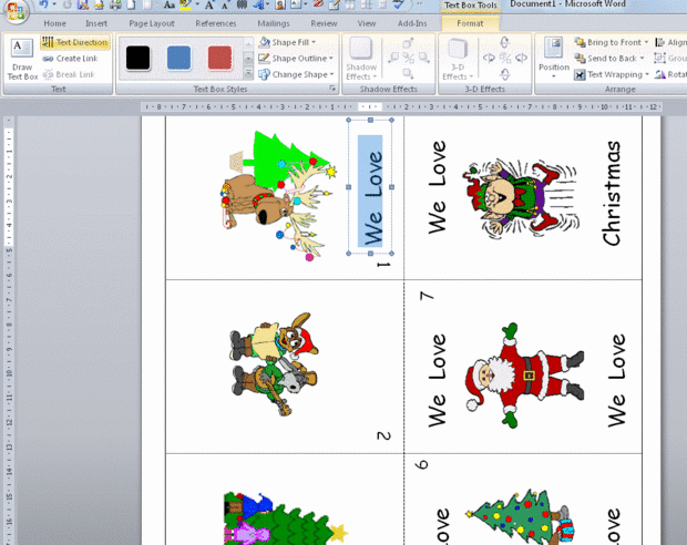 Fig.3. redimensionar el cuadro de texto para caber su nueva orientación de texto. Nota: no traer el texto fronteras caja en demasiado cerca al texto; mía miró bien hasta lo imprimí, luego se corta la parte inferior de las palabras apagado (véase los cuadros del libro terminado!).