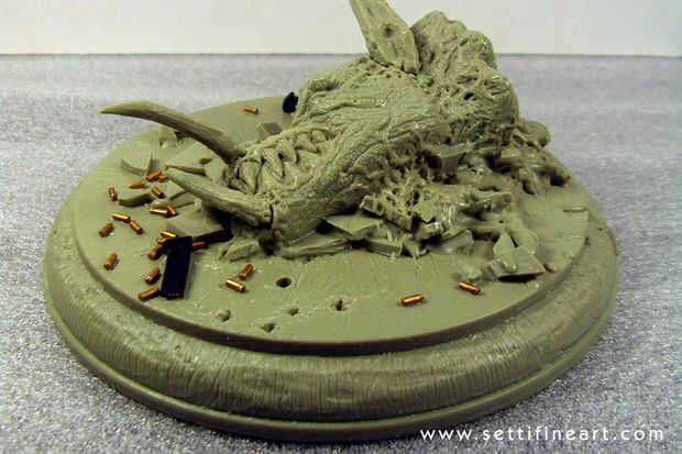 Encontrar que una base puede hacer la diferencia entre una buena escultura y un excelente. En este caso quería asegurarse de que contó la historia de una manera clara. Otra consideración es que no quería que la base para interferir con la figura o ser demasiado complejo especialmente con fines de reproducción. Concedido nunca dejó producción aspectos técnicos obstaculizar el aspecto de la obra de arte, o que interfiere con la fabricación de una escultura mejor, sin embargo, es una buena idea pensar en estos aspectos. Siempre debe considerar cómo algo va a hacer y tratar de trabajar en la pieza final para hacer su vida más fácil y permitir una reproducción mejor.