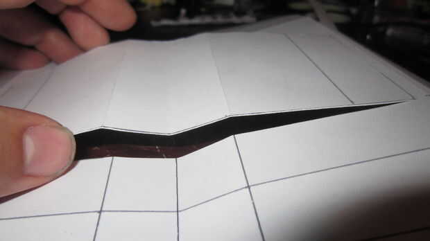 Usando la primera imagen como guía, ahora se cortan las líneas que componen el centro. No corte las líneas que previamente arrugadas! Esto es donde un bisturí va a venir bien. Corte con cuidado cada una de las líneas, hasta que el centro ahora es capaz de mover el resto del relleno.