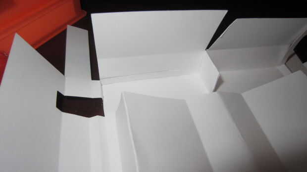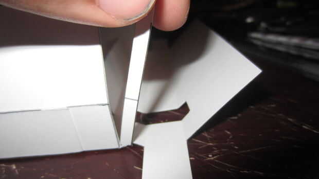 Luego ser pegado la pequeña aleta el prospecto. A diferencia de la aleta anterior, esta aleta se pegar en el interior del inserto. Aplicar pegamento a la cara exterior y sujete la cubierta como se muestra en la imagen. Repita para todas las 4 aletas.