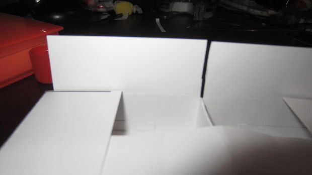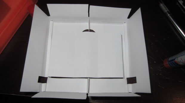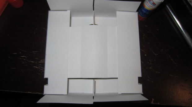 A continuación, Aplique pegamento en las áreas se muestra en la imagen de adelante hacia atrás. Ahora se doble cada aleta hacia abajo para que se conecta a la aleta anterior y si es posible el portacartucho.