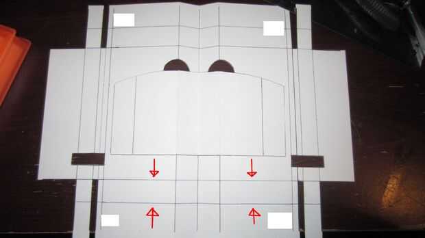 Similar a los lados, se ahora pliega la parte superior e inferior, y marcada por las flechas en la primera imagen. Es importante que mientras estas arrugando, también doble y doble las aletas. Una vez que la parte superior e inferior se pliegan, aplane la plantilla una vez más.