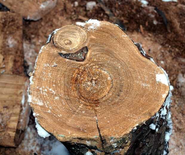 Muchas veces los registros se pudren desde el centro hacia afuera. En éstos el núcleo no va a ser bueno. Cuando se ejecuta a través de éstos intentan cortar la madera buena a ambos lados de la parte mala. ¿Cómo puede usted saber si su mal? Mirando al final veremos que la madera de base es diferente, suave y esponjosa. También no deja líneas nítidas cuando se corta, como cortar mantequilla caliente.