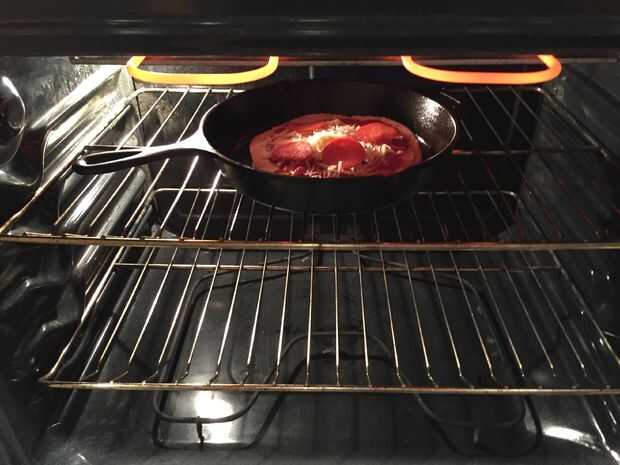 Inmediatamente, plop la sartén en el horno debajo de la parrilla usando un guante protector de algún tipo.