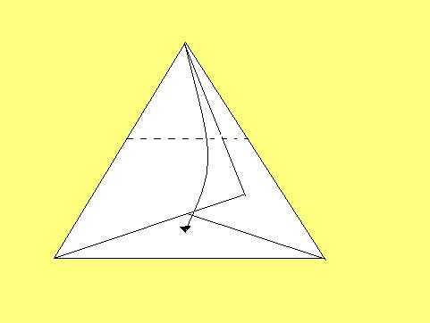 Doblar la mitad del papel, dejando sólo unos centímetros del borde al borde puntiagudo (o como se muestra)