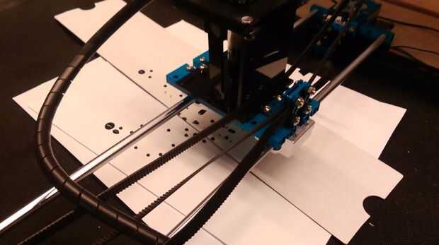 Extrusión para ser confiable, es un poco engorroso. Terminé la tela a un pedazo de madera de 1/4" y utilizando una aguja de jeringa de calibre largo nariz 20 para obtener una impresión algo decente. Ayuda a mantener la madera cerca de la punta de la aguja de la jeringa. Con un poco de sutileza, es posible obtener buenos rastros conductores! Otra vez, escribí una interfaz para procesamiento y serie había portado a Arduino. Si utiliza un tablero de conductor del motor correcta paso a 3 paso, usted debe ser capaz de usar algo como Grbl y ambos ejecutan el estirador y el X / steppers Y en sincronía. Yo no puedo prometer nada, pero me imagino que esto mejora su impresión y huellas!