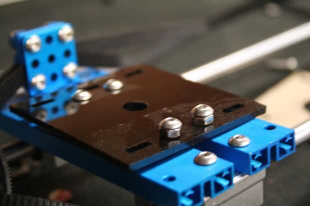 3.) 'cars' para los dos lados de su eje X se deslice fácilmente arriba y abajo de la tela. Se necesita la ayuda de un motor y otras necesidades para apoyar al otro lado de la correa dentada. Sorprendentemente, usted no necesita ruedas, rodamientos o algo para eliminar la fricción para que el plotter funciona correctamente.