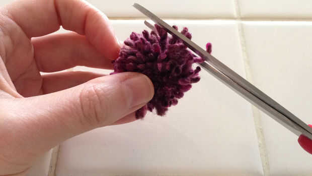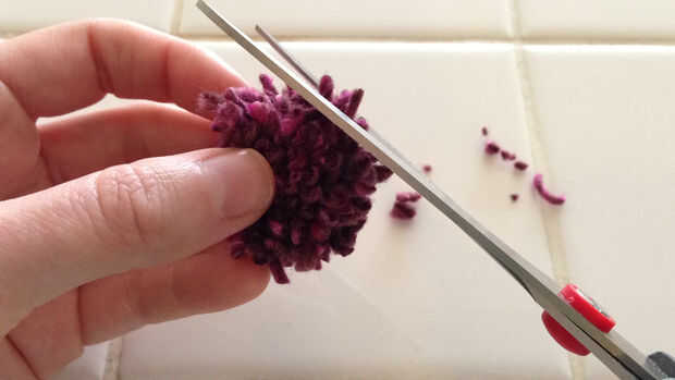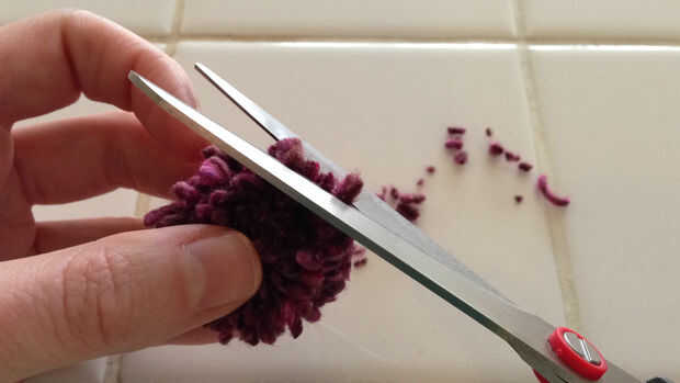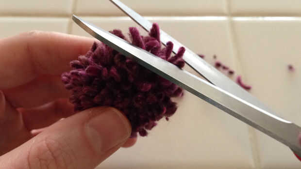 Echa un vistazo a los pompones y hacer sus ajustes finales. No me importa mi pom-poms es perfectamente esférico, por lo que sólo hacer recortar un poco para deshacerse de las piezas obviamente demasiado largo.