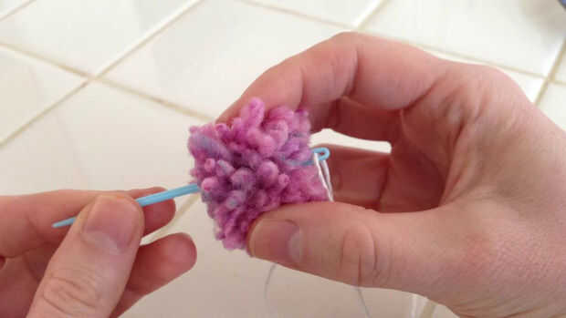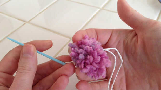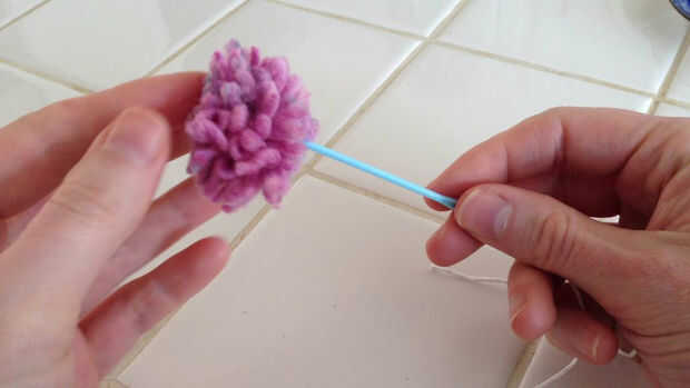 Lo único que usted necesita recordar al enhebrar la cuerda a través de la guirnalda es pasarlo a través del lazo del centro. Otra forma de pensarlo: imagen del lazo del centro como un "." Asegúrese de que la cadena va por en medio de la O, de lo contrario que tu POM-POM no será seguro. Te probablemente averiguar esto por su cuenta, pero pensé que sería digno de mencionar.