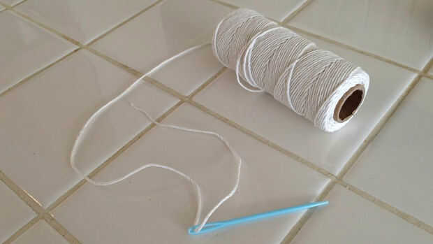 - Cadena — algo con espesor y textura que va a ser mejor que un fino hilo debido a que los pompones se puso donde ponerlos.