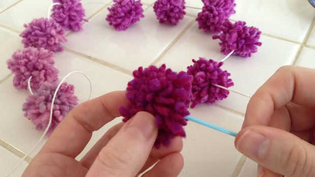 Si desea hace un ramo de pompones y alegrar una pared en su casa, usted puede hacer en una guirnalda.