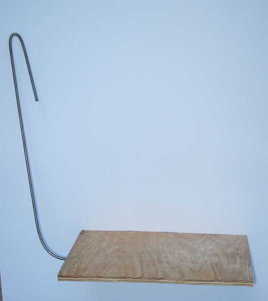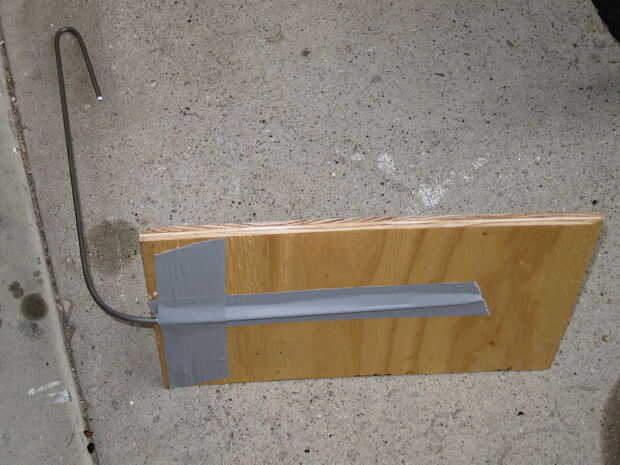 Manteniéndolo simple y utilizando lo que tenía en mano, tomé un pedazo de madera contrachapada y doblar una varilla de acero de 3/16" para conectar al gatillo de la sierra.  I conducto con cinta la varilla en la parte inferior de la madera contrachapada.  La longitud de la varilla de acero depende de la altura son los caballos de la sierra.  Útil lo hizo un poco corto como quería a la consonancia fina el pedal con ataduras de cremallera!  Se utilizan dos abrazaderas de plástico.  El primero va ceñida alrededor del gatillo para que no caiga.  El segundo se utiliza para ajustar la longitud del pedal para ajustar la 'sensación' de él.  La barra es overkill.  Un gancho de ropa o un pedazo de cuerda funcionaría igual de bien.