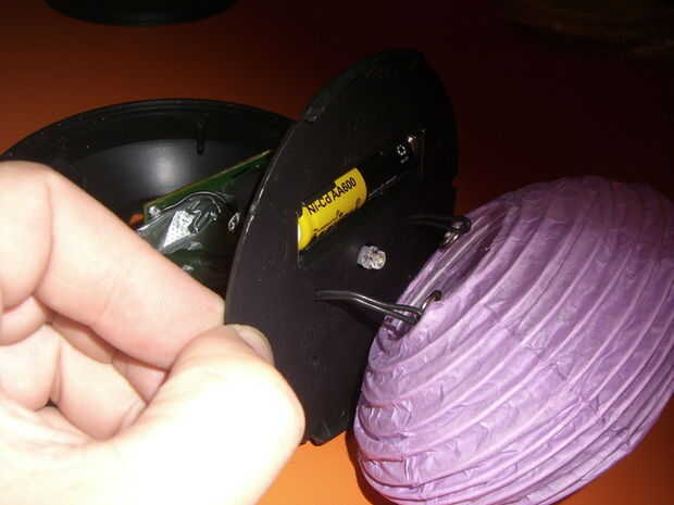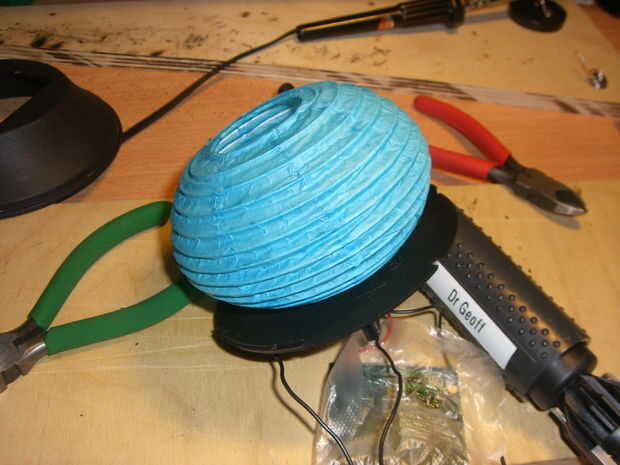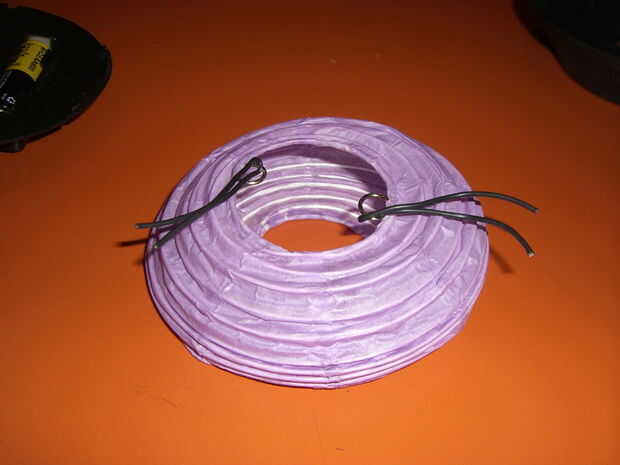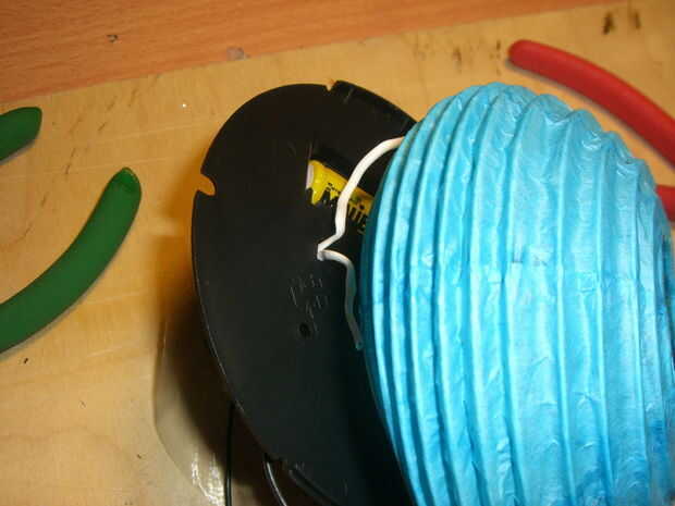 Sólo algunos alambre por los agujeros convenientemente situados del hilo de rosca y atar la linterna a la base de la luz.