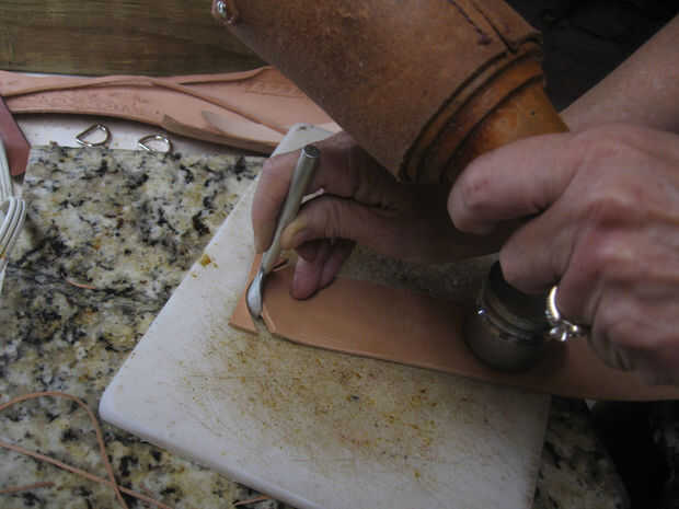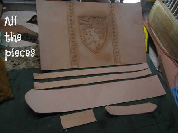 Estos pesos de cuero no son realmente importantes. Usted puede usar lo que tengas a mano. Empecé con 12 1/2 x 2 en correa de 3-4 oz y no le gustó mi colocación de sello celta, así que cambió a 5-6 para hacerla parecer más robusta.