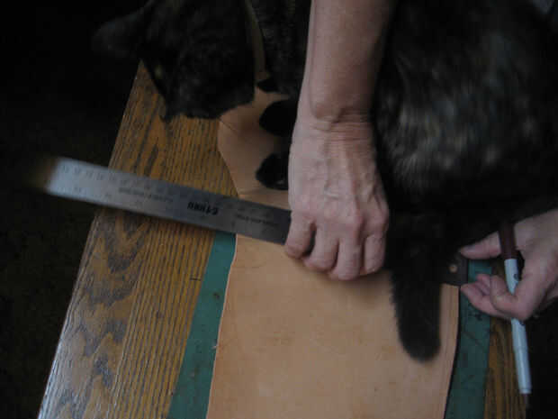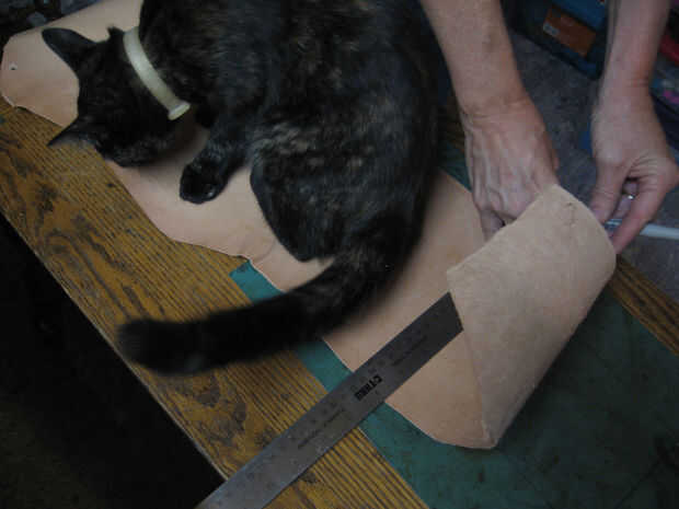 Cortar con un cortador de caja utilizando una regla metálica como guía. Por favor tenga cuidado. Forma de un borde de la 121/2 x 2 cinturón y ambos extremos de 4 x 3/4 en pieza con cinceles de forma. Si tienes un gato, por arte de magia aparecen y se sientan en la parte que usted necesita para cortar. Retire el gato, vuelven a aparecer, volver a retirarlo...