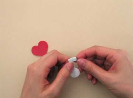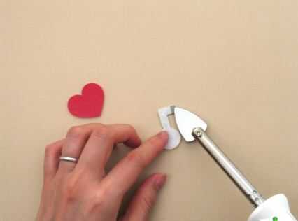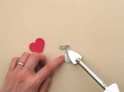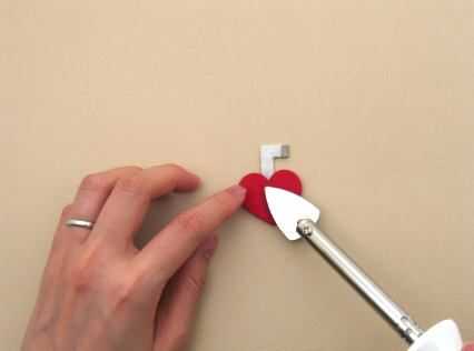 Alinee la pieza roja (pegamento hacia abajo) y suavemente la plancha sobre el fieltro. Tenga cuidado de no pegar a la mesa. El compuesto del tirón y dejar a un lado.